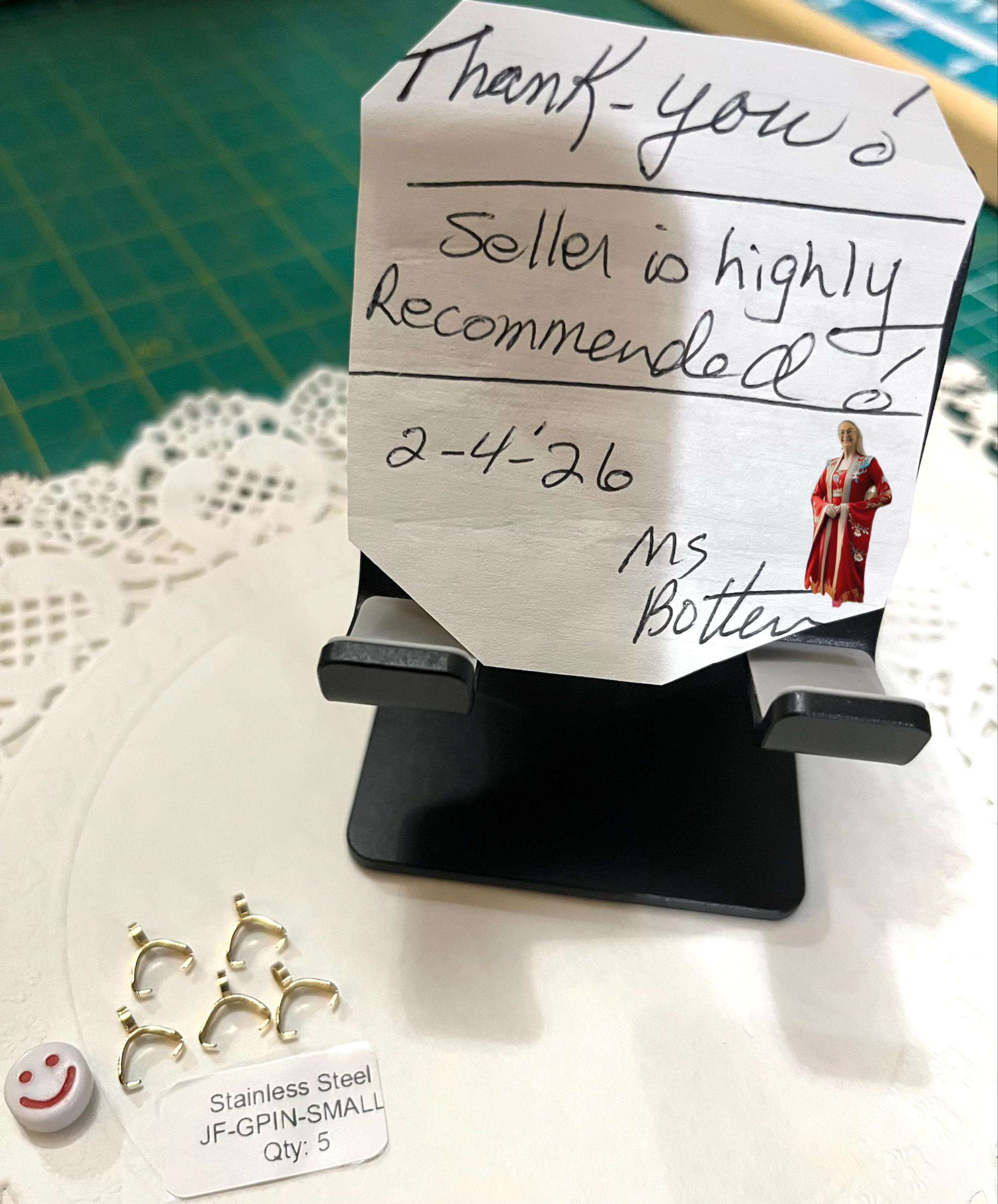 These Pinch Bails are Perfect for my needs. THANK YOU FOR THE THOUHTFUL FREE GIFTS & VERY PRETTY CUTIE PACKAGING WITH THE THANK YOU STICKERS!!