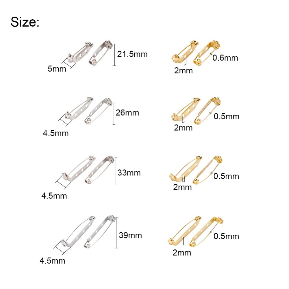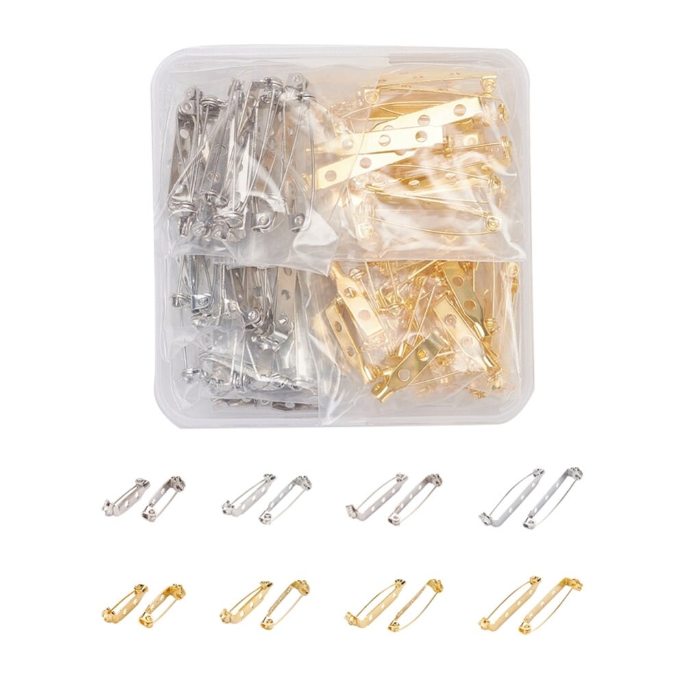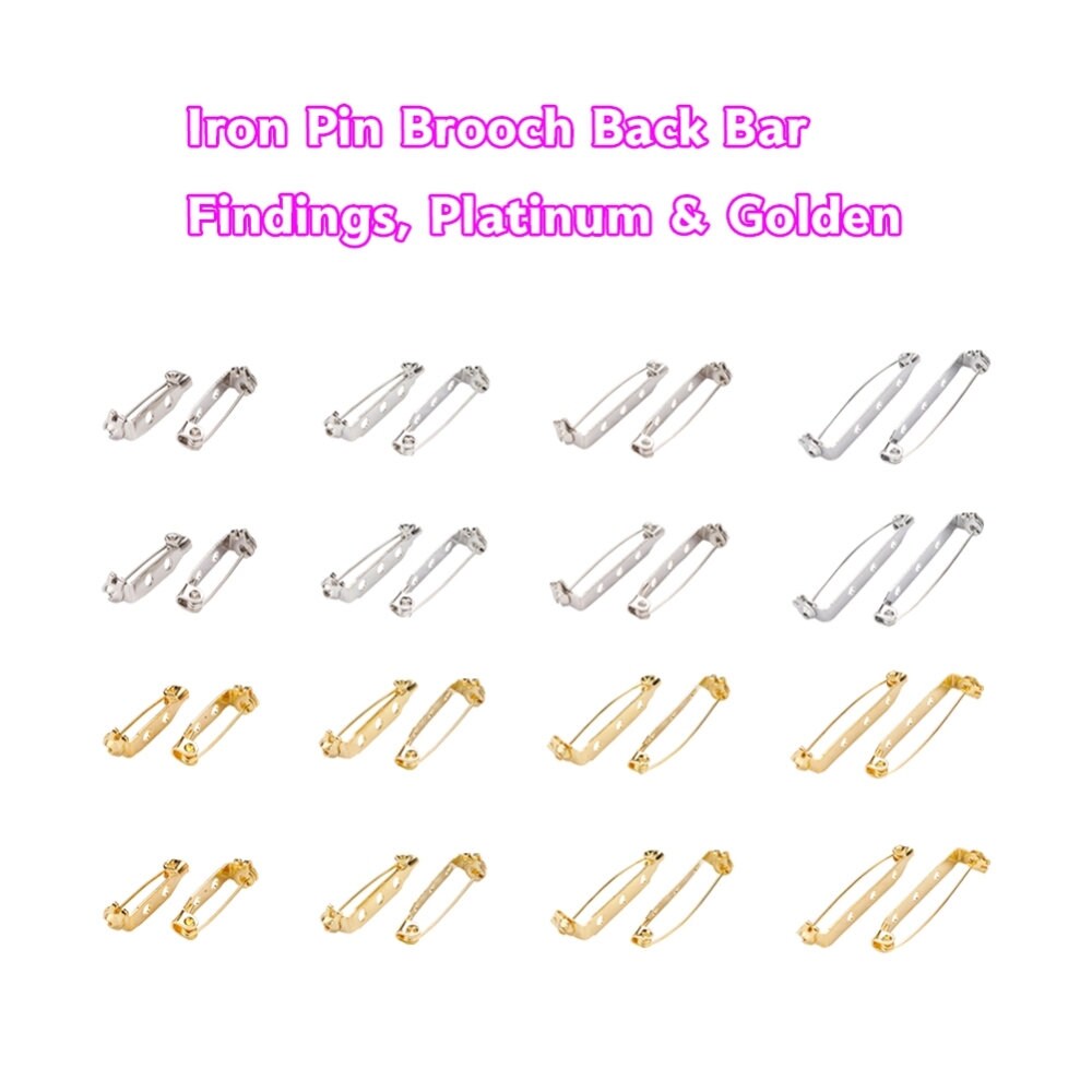 Design your own pins and broaches! This DIY Iron Pin Brooch Blank Bar Findings comes with about 100 pins. Pins are held in a reusable plastic storage container measuring 8.2x8.2x2.7cm. Kit comes with a mix of both gold and platinum colors.