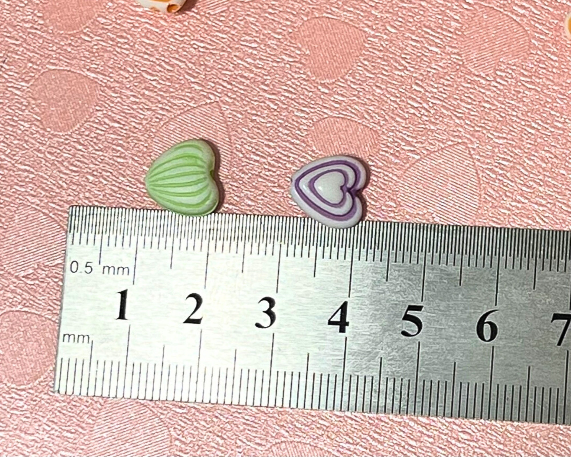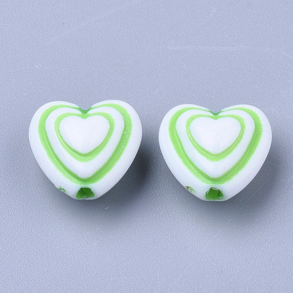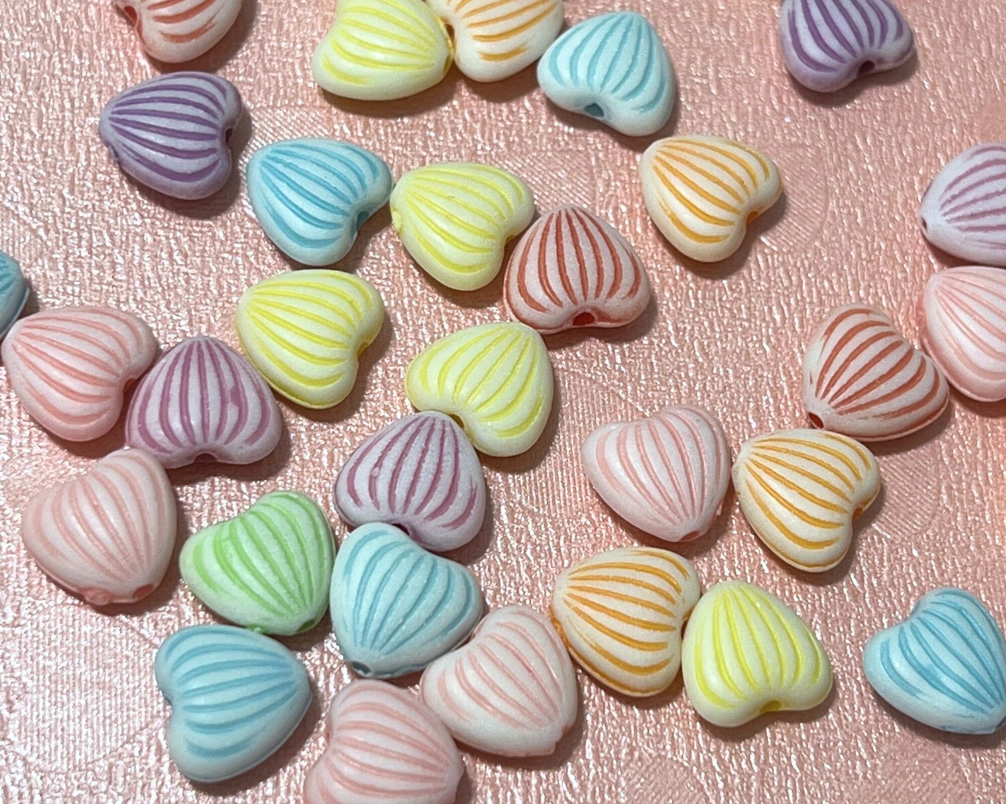 Approximately 150 beads per bag. Take your pick between the Striped or Hearts in Heart style beads. Hearts in Heart beads measure about 10mm long, 10mm wide, 6.5mm thick, hole: 1.6mm. Striped heart beads measure about 10mm long, 11mm wide, 5mm thick, Hole: 2mm.