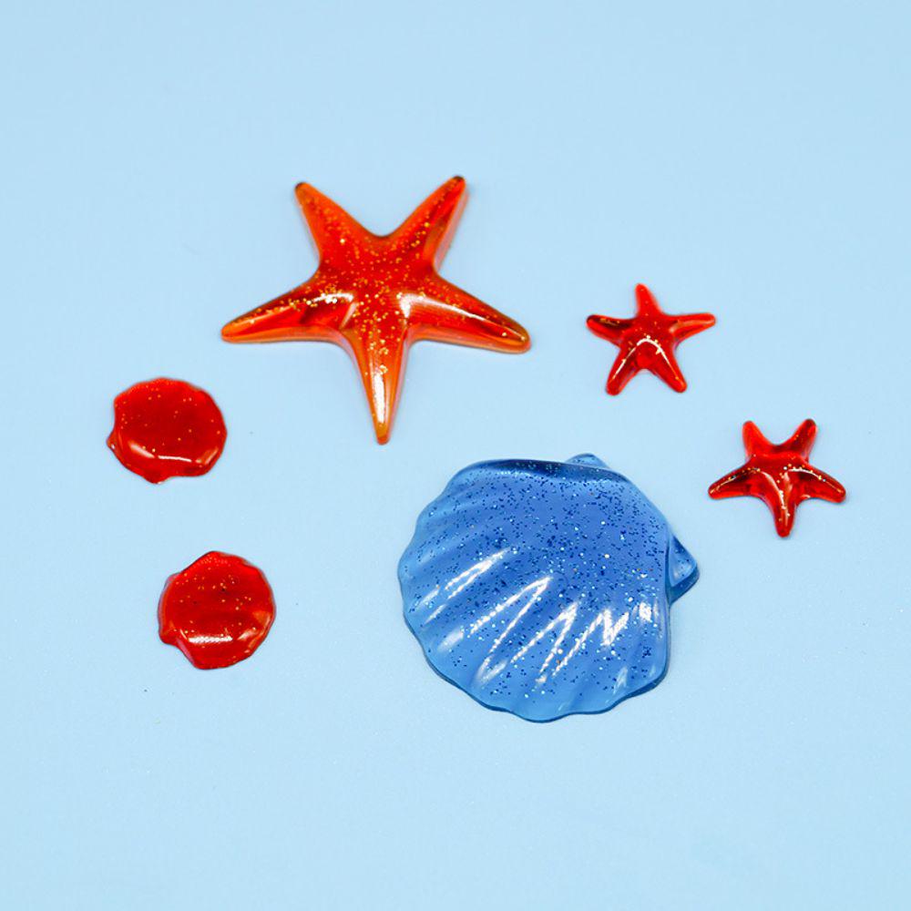 Create beautiful and intricate decorations with this Oceanic Themed Silicone Mold. Features Seashell and Starfish shapes in varying sizes. Mold measures about 6.1cm long, 8.5mm wide, and 1cm thick. Large star mold measures about 35mm long, small stars about 14mm, large shell about 32mm long and 35mm wide, small shells about 14mm long and 15mm wide.