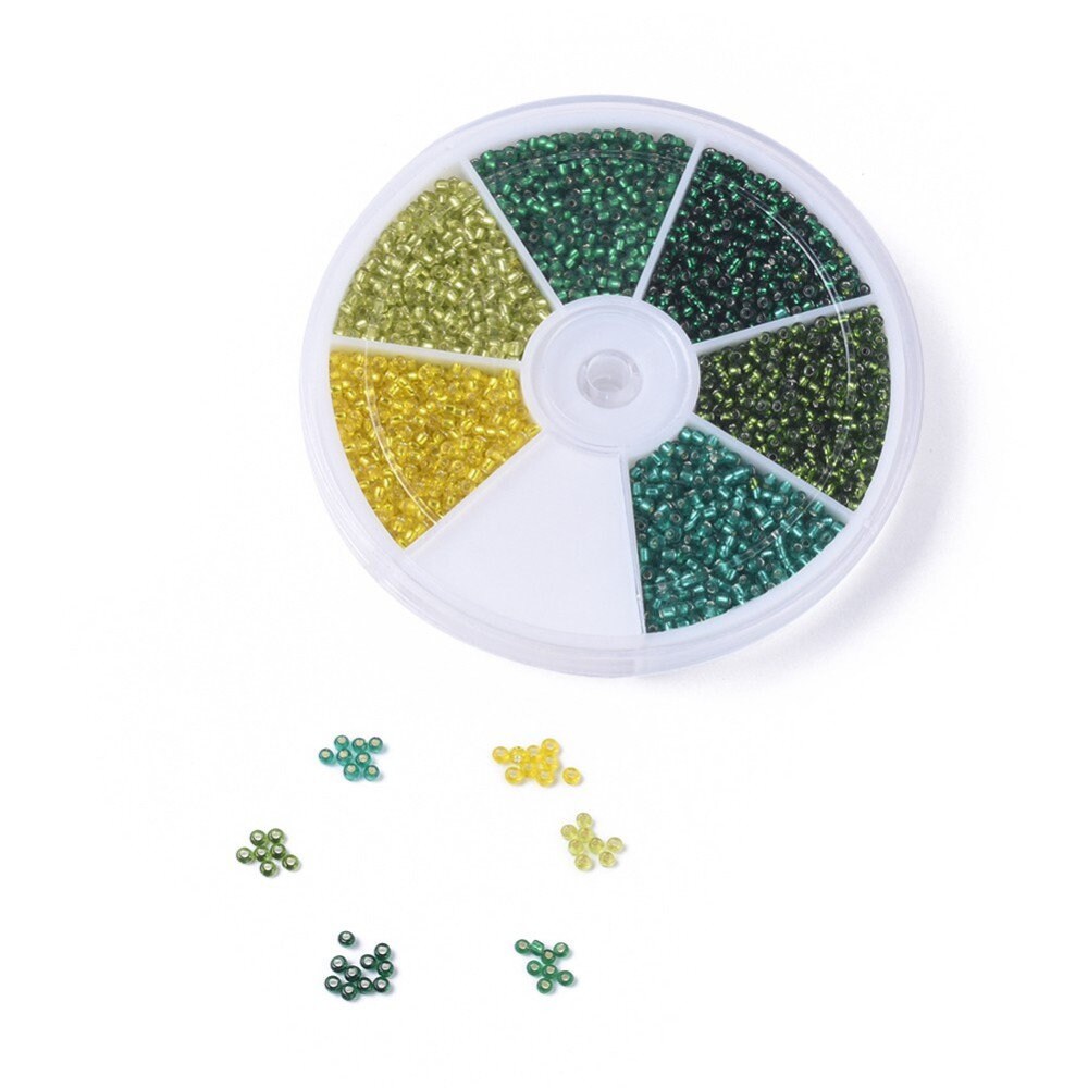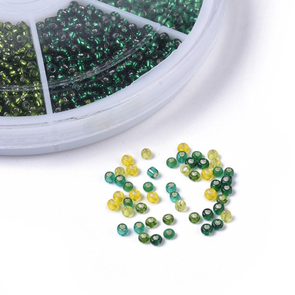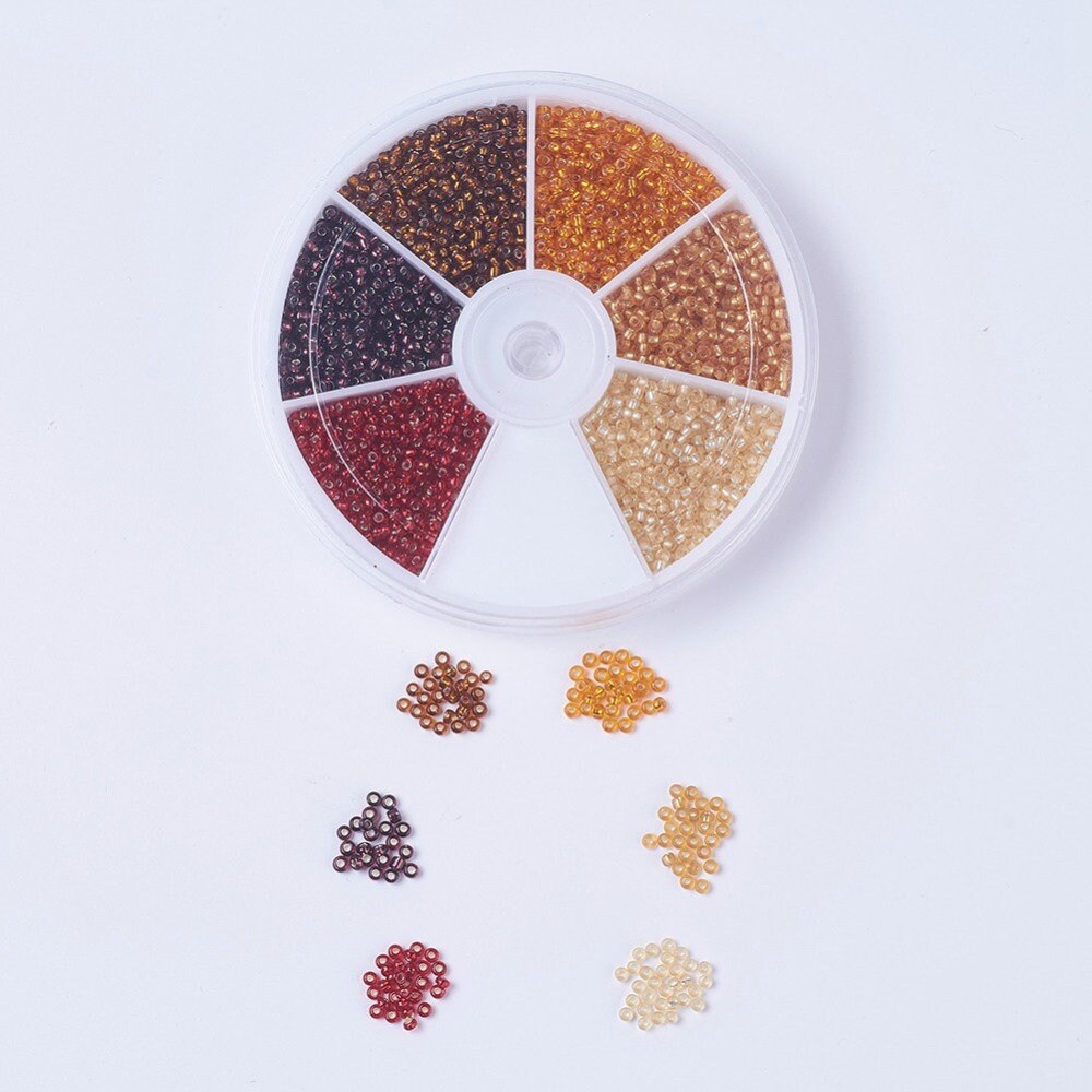 Choose from a variety of silver lined seed bead packs featuring different themes. There is the Forest Theme-which offers different shades of green and yellow. Winter or Ocean Theme-providing various shades of blue. Autumn Theme-your leaf changing colors such as reds, browns, tans, etc. Metallic-featuring electroplated glass seed beads including Iris, Black, Silver, Rainbow, Brown, etc.