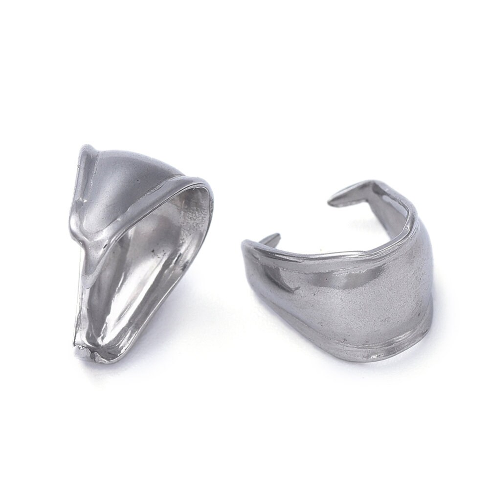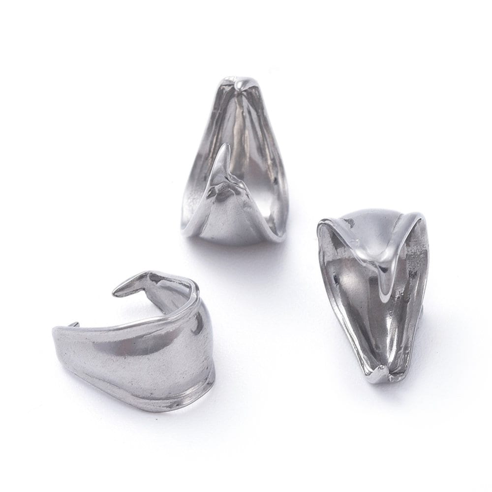 Choose between 5 or 10 fancy pinch bails for pendants, charms, and more! Made from 304 Stainless. Stainless Steel/Platinum Color